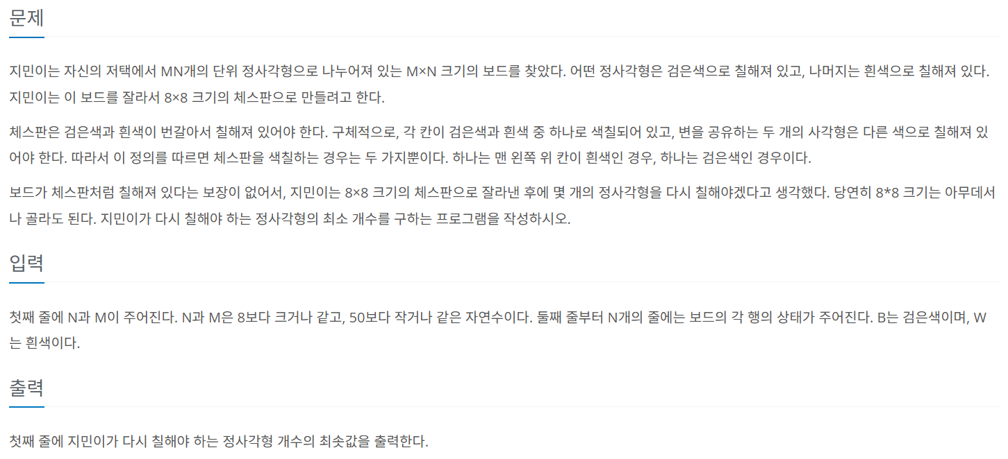 [Python] 백준 1018번 체스판 다시 칠하기 본문